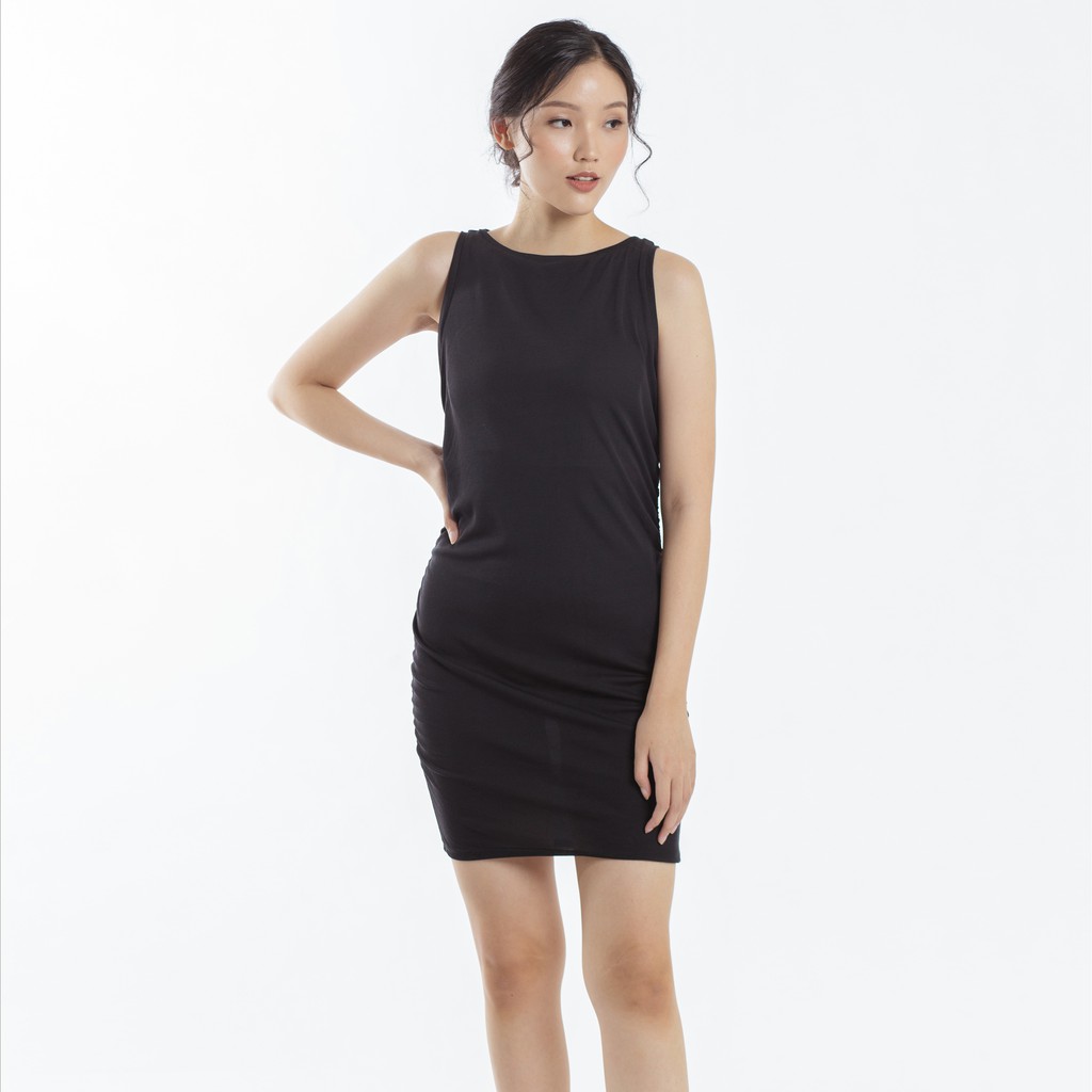 (LAST PIECE) Cloth Inc Ruched Side Bodycon Dress | Body Suit Dress Wanita Tanpa Lengan | Mini Dress