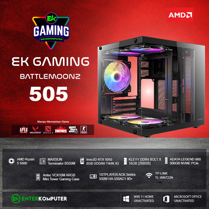 PC Rakitan EK Gaming BattleMoonz 505 Ryzen 5 RTX 5050 Enter Komputer