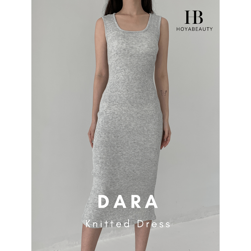 [HoyaBeautyID] DARA Knitted Dress - Sleeveless Midi Bodycon Knit Dress Knit Premium / Baju Dress Panjang Wanita Basic St