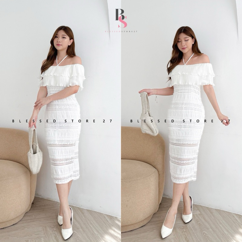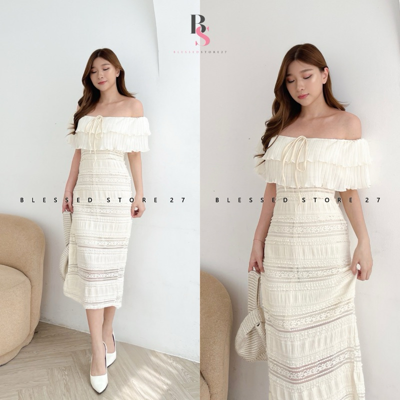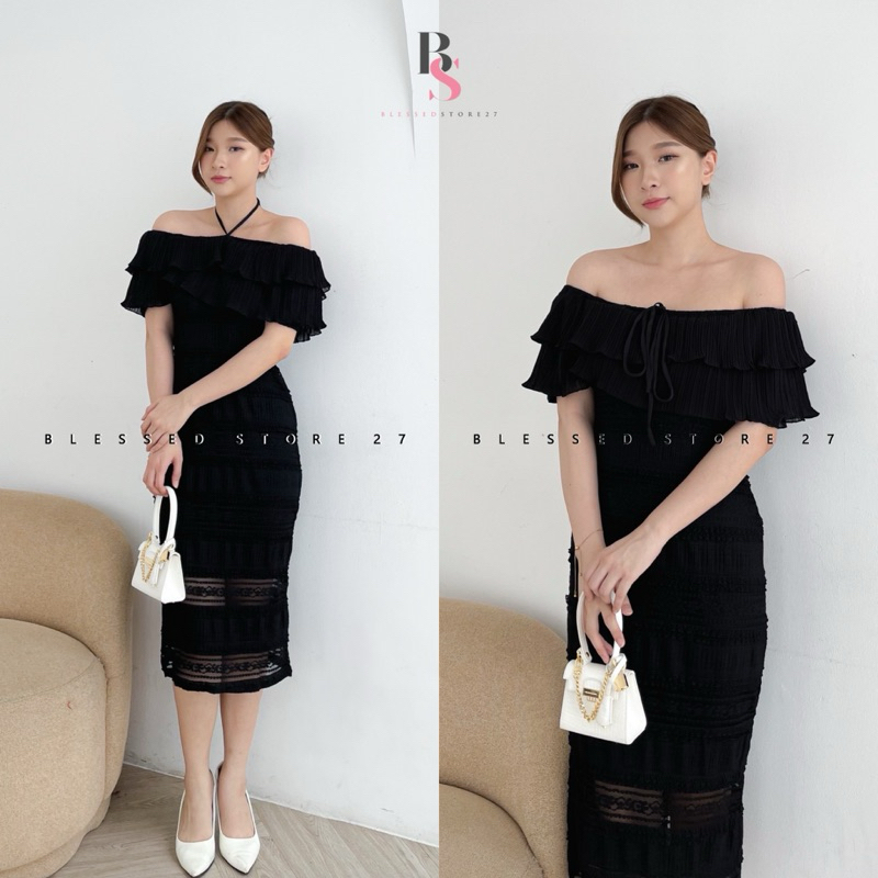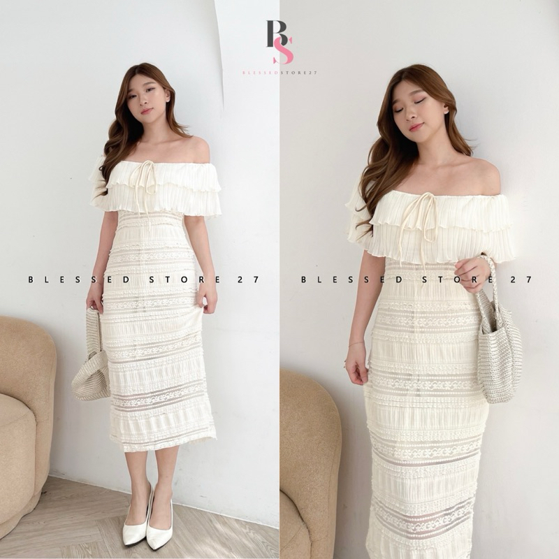 D1475 ISHANA KOREAN STYLE SABRINA LACE BROCADE VINTAGE MIDI DRESS DINNER SIMPLE POLOS PESTA KONDANGAN ELEGANT BODYCON