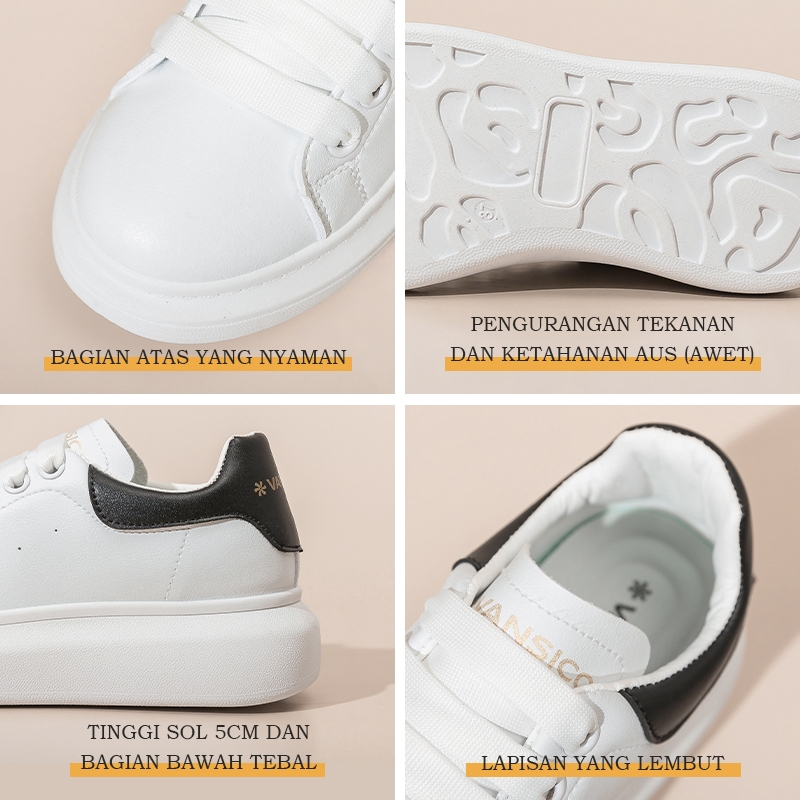 VANSICO Sepatu Sneakers Putih Wanita Original 100 PERSEN Tali Premium Kekinian Kets Cewek Hitam Olahraga Santai Casual Sport Shoes Korea Style VS056