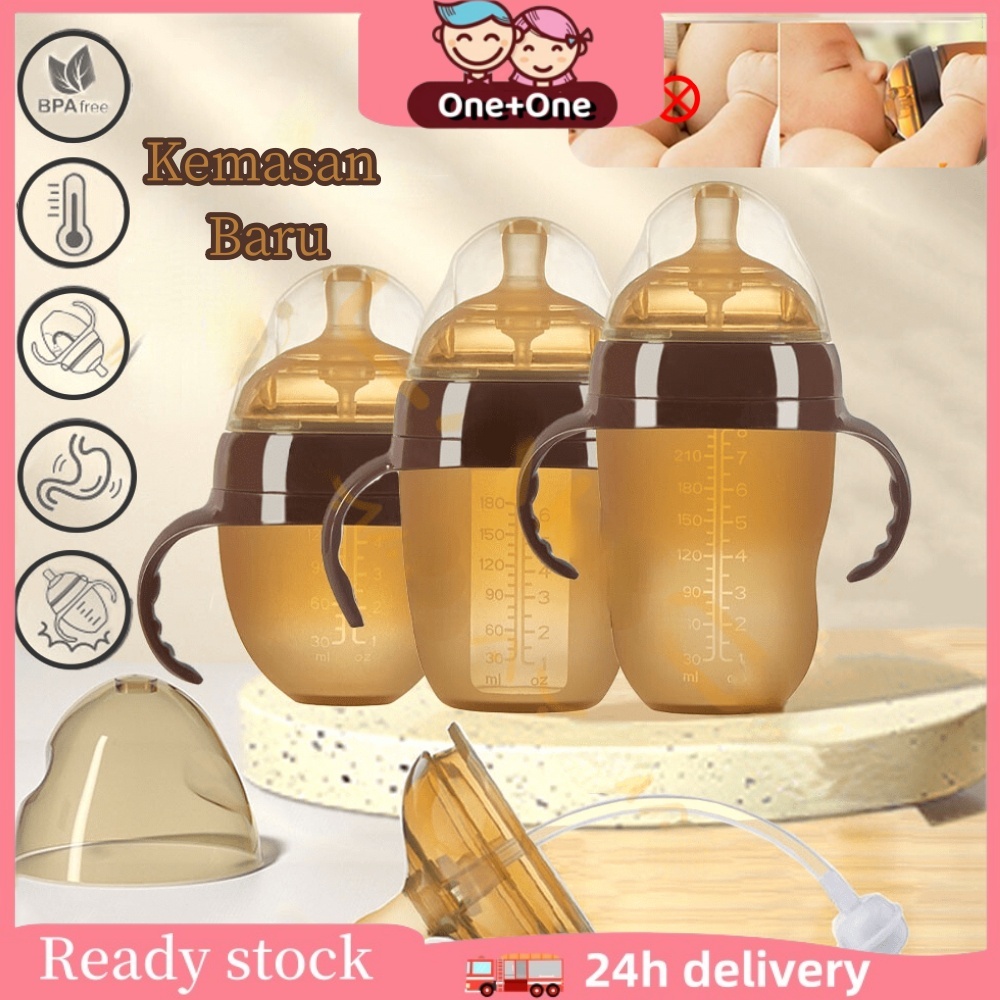 [Star] One+One Dot Bayi Botol Silikon Nano Botol Bayi Susu Dengan Sedotan Feeding Bottle Natural Nursing Bottle Dengan Handle