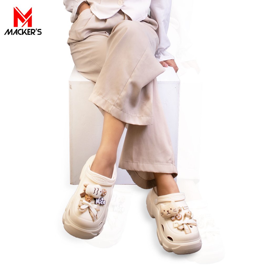 [MACKER'S] T01 114 Sandal Baim Sandal Kodok Wanita Terbaru dengan Jibbitz Kucing lucu sandal Wedges lucu sepatu karet kekinian stylish