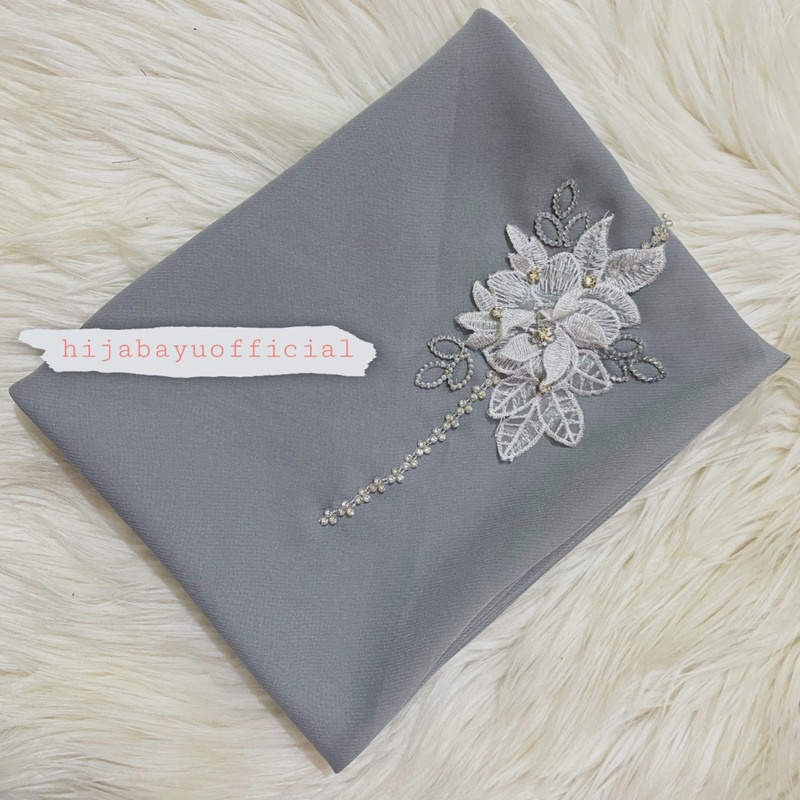 Hijab Segiempat Bunga Bordir Polycotton 115x115 Cm