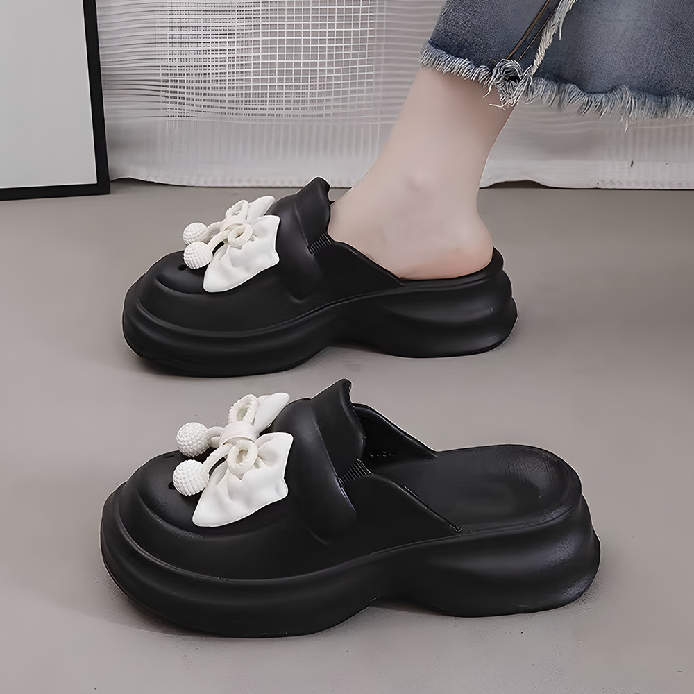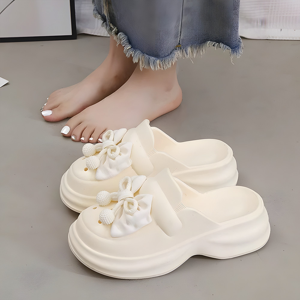 Sandal Slop Wanita Kekinian Sandal Kodok Wanita Fuji Sandal Baim Tali Pengikat Wedges Anti-selip