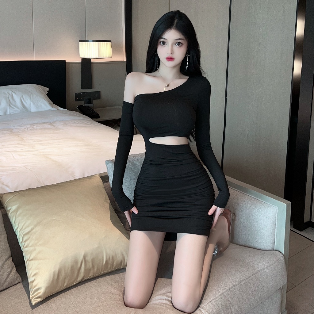 Gaun Mini Dress Bodycon Hitam One Shoulder Asimetris - Sempurna Untuk Gaya Malam Hari Anda W1069