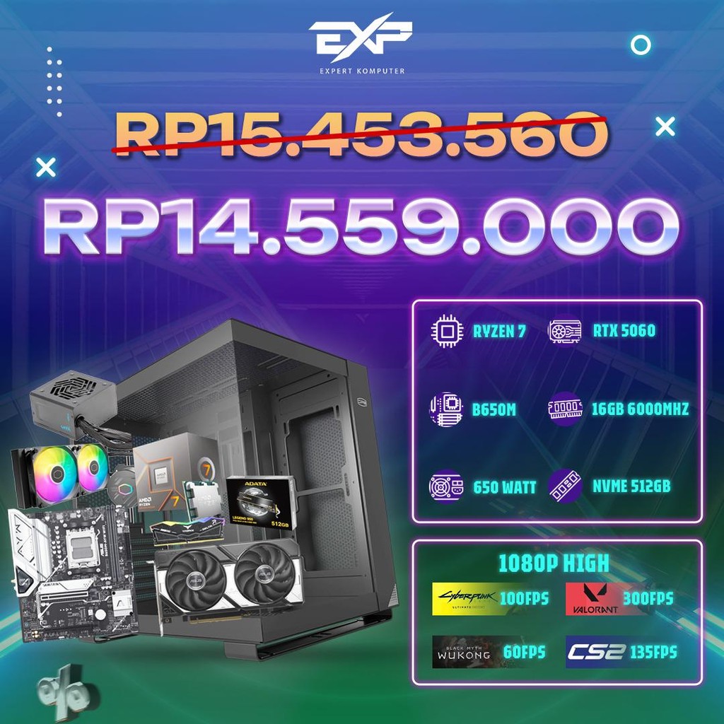 EXP PC Gaming Powered By AsusRyzen 7 8700F GeForce RTX 5060 16GB Wi Fi PC Rakitan