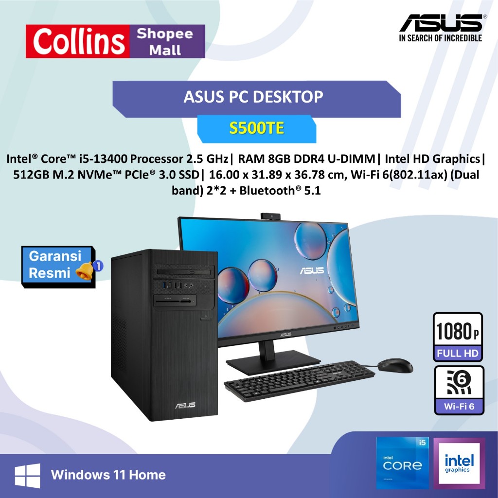 ASUS PC DESKTOP S500TE I5 13400 8GB 512GB W11 BLK 585000003W +LED 21 5