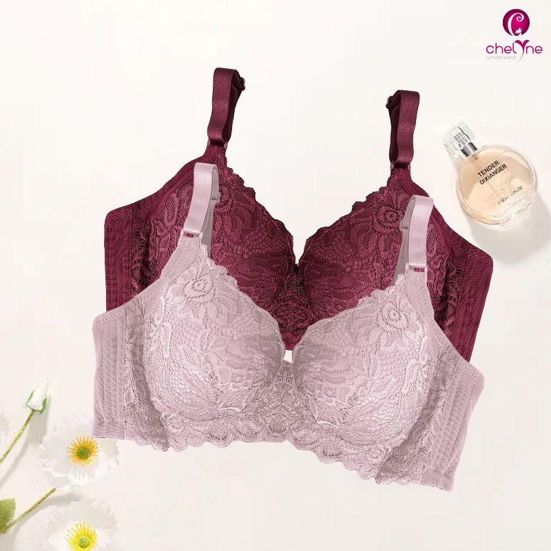 Chelyne BH Wanita V3571 Jumbo - Full Cup Bra Full Brukat Dengan Kawat Penyangga - Big Size Bra 38/44 Cup C