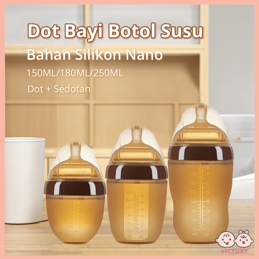 [Star] VICTOKY Dot Bayi Botol Susu Bahan Silikon Nano Perak Botol Bayi Susu Dengan Sedotan