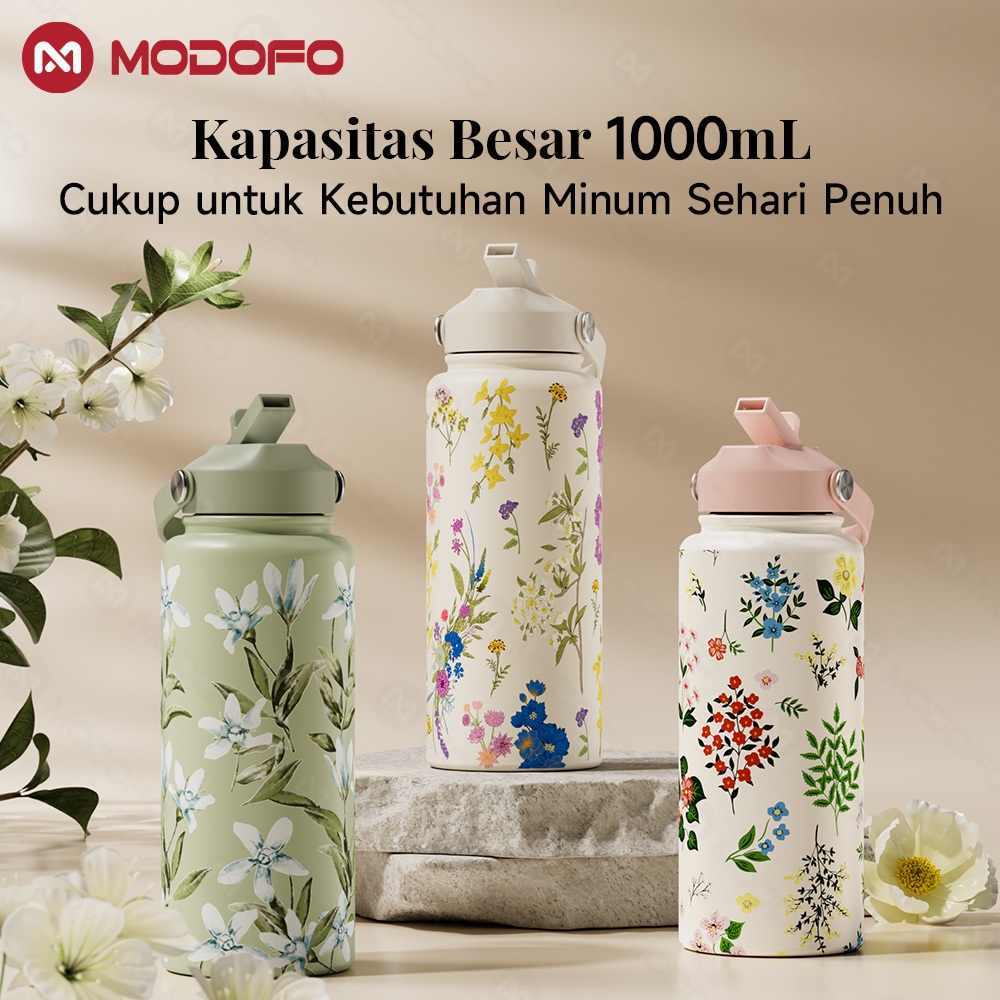 [Star] MODOFO Sedotan Tumbler Botol Minum 1000ml Stainless Premium Tumbler Tahan Dingin 24 Jam Anti Tumpah