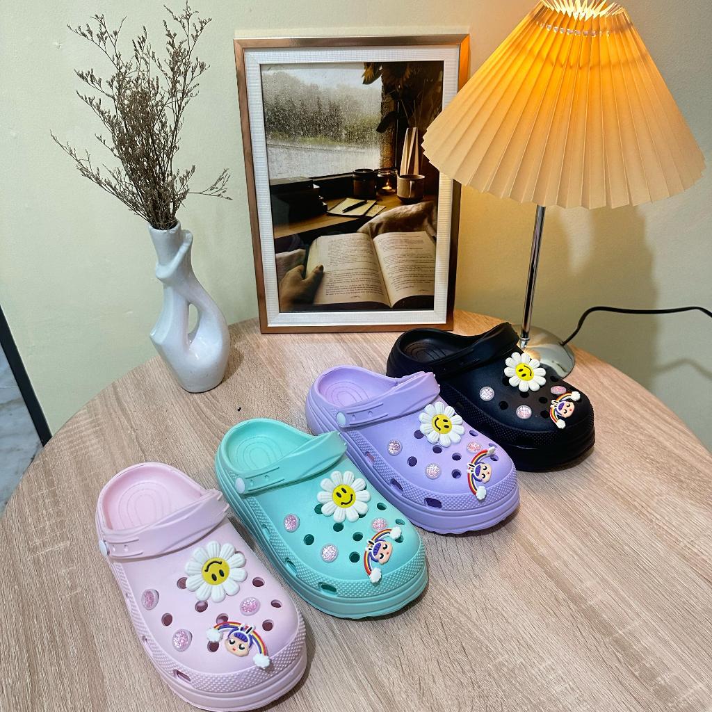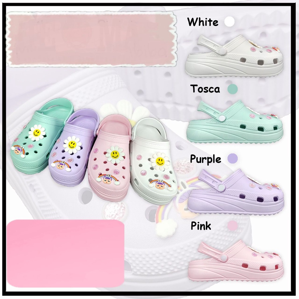 Sandal Wanita Jelly BAIM MOTIF Import / Sendal Kodok baim cross tinggi 5 cm karet tebal import