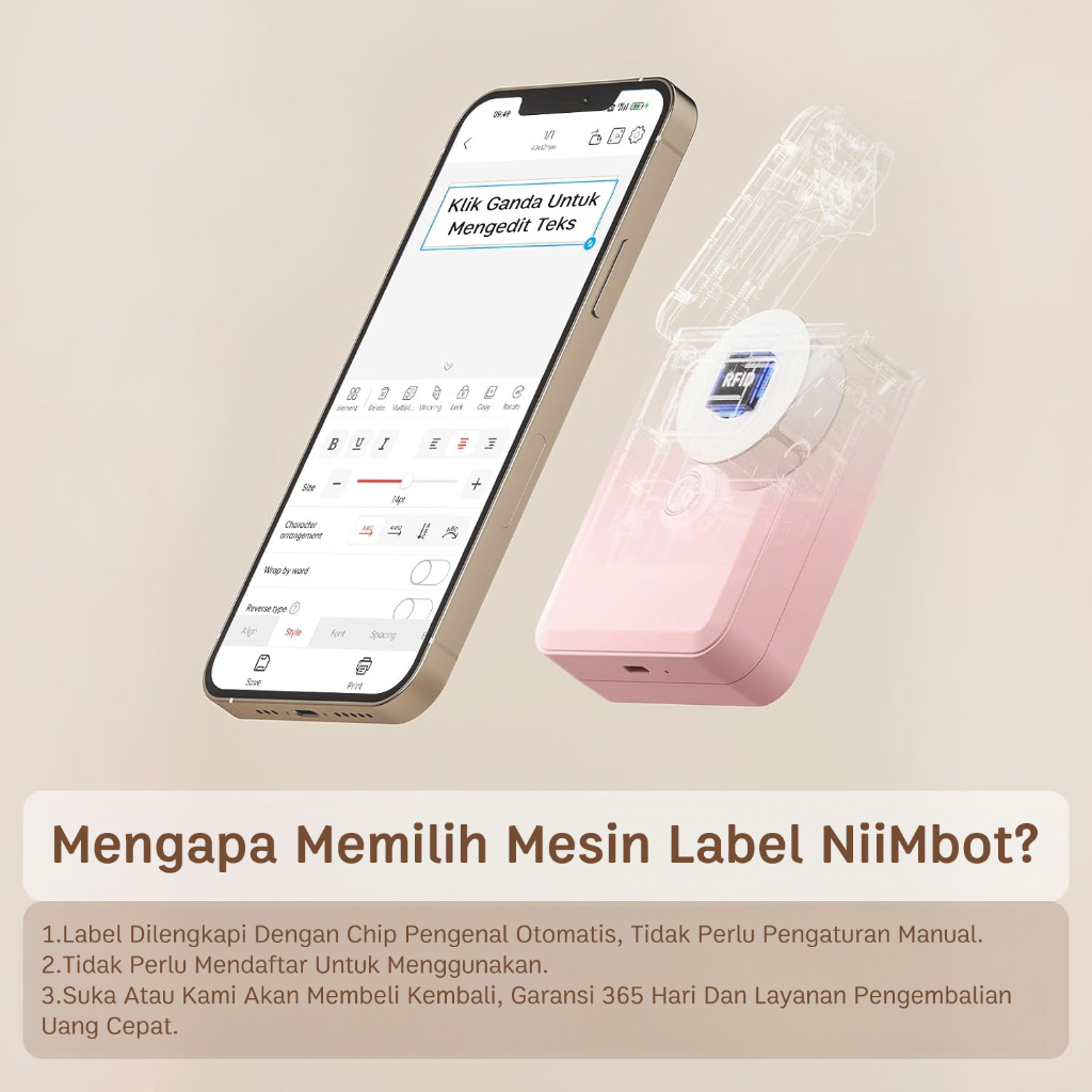 NIIMBOT D110 Printer Label Nirkabel, Dilengkapi dengan Label, Printer Stiker Label Harga/Nama