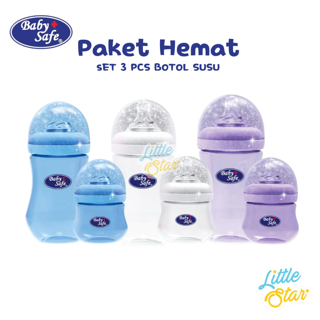 [Star] 3 Pcs Baby Safe Wideneck Bottle 150/260Ml BabySafe Botol Dot Susu Bayi Anak Newborn Wide neck