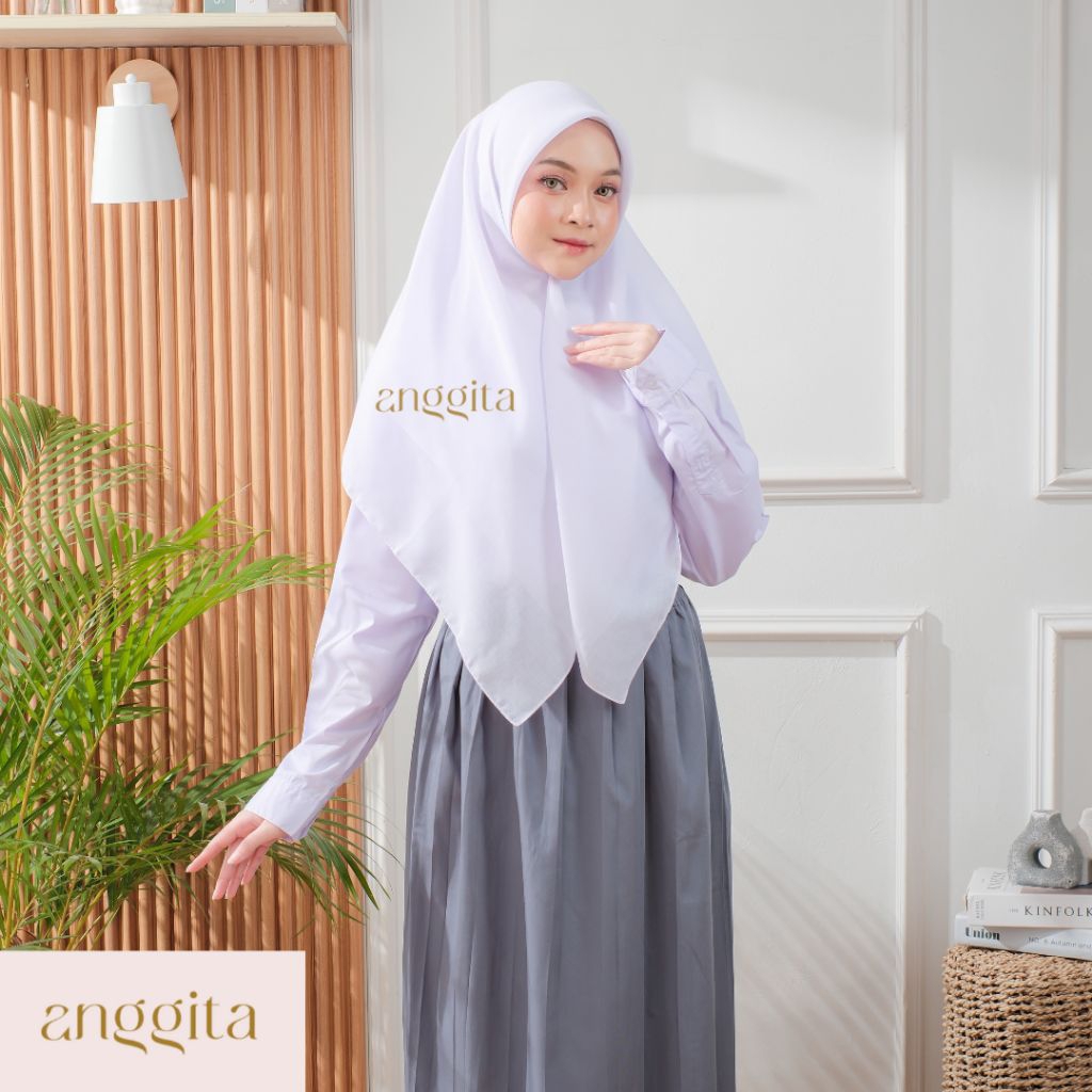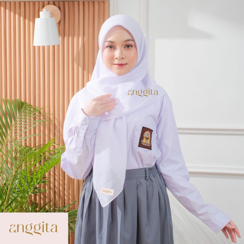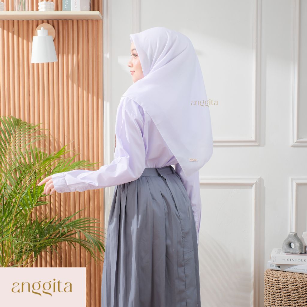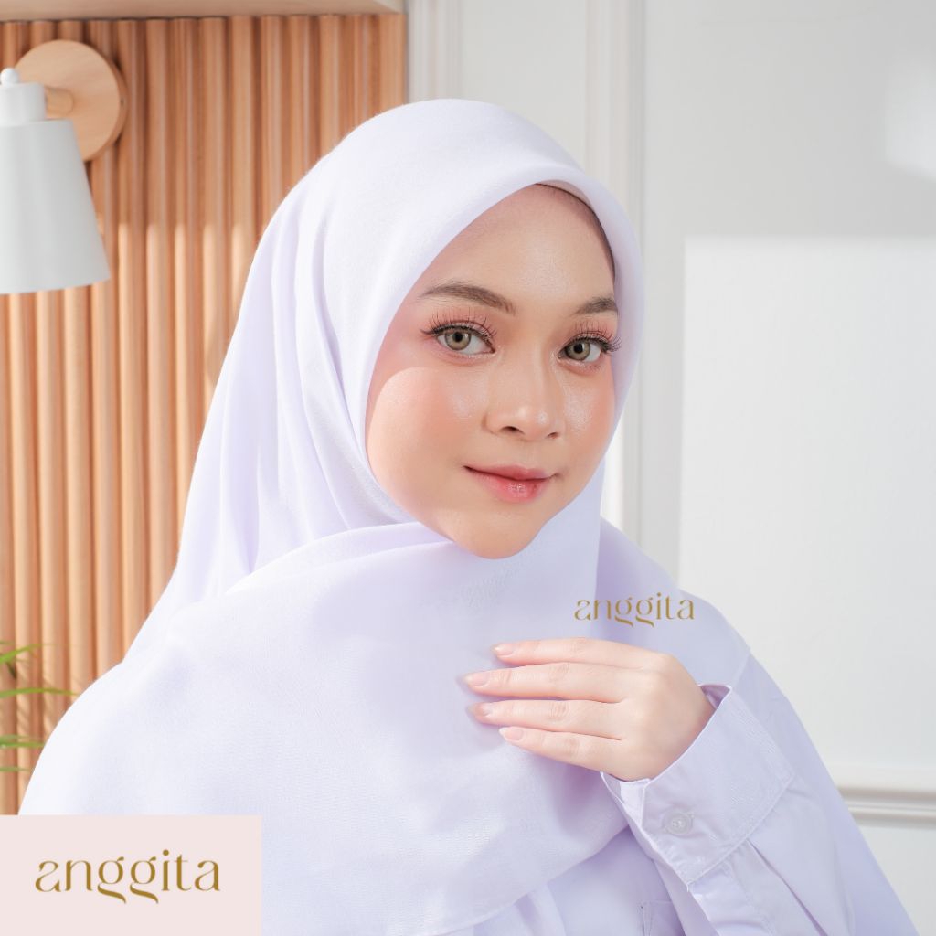 Anggita - Hijab Sekolah Paris Premium Tebal Segiempat Square 115x115cm Jahit tepi SD SMP SMA warna putih