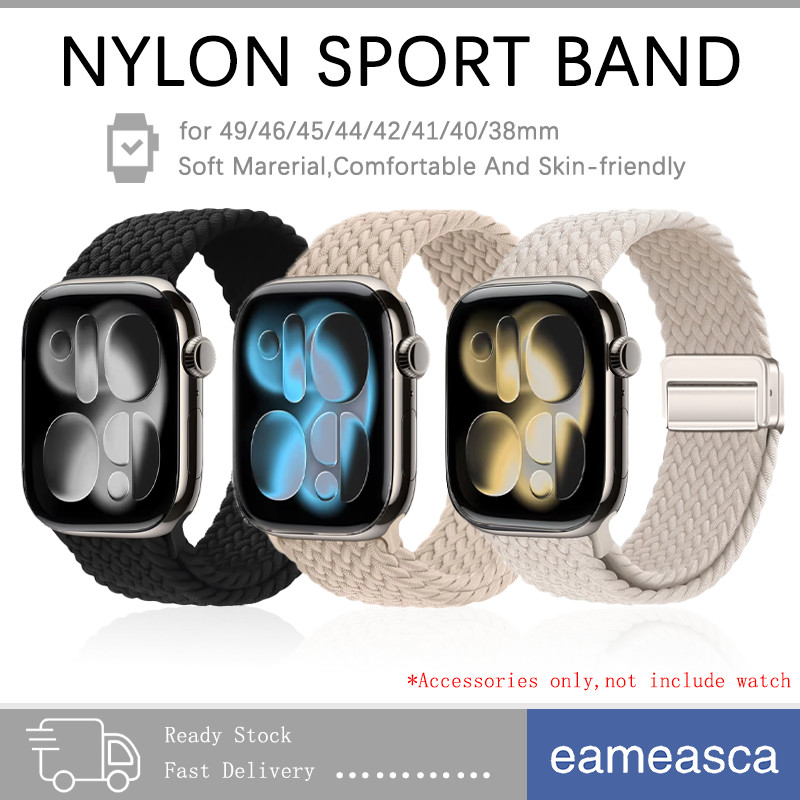 Magnetic Braided Nylon Strap for Iwatch Scrunchie Apple Watch Ultra 3 2 SE 3 2 49mm Series 11 10 9 8 7 6 5 4 3 46mm 45mm