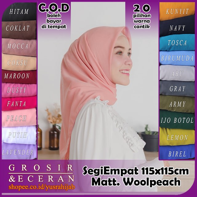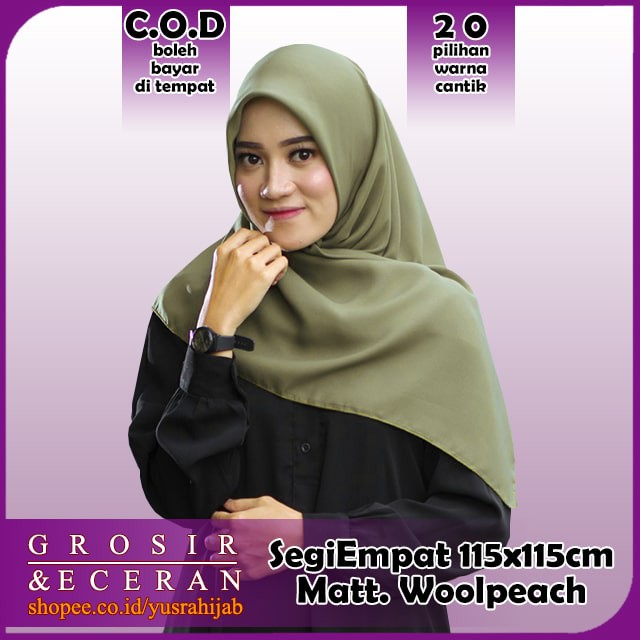Hijab Wolfis 115x115 Jilbab Segi Empat Kerudung Polos Woolpeach Premium Grade A