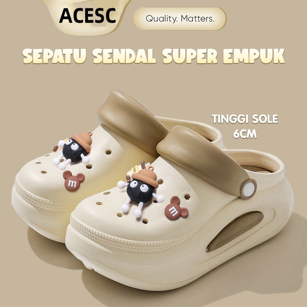 ACESC Sepatu Sandal Wedges Jibbitz 6CM Sepatu Sendal Fuji Lucu/Sandal Kekinian/Sendal Baim