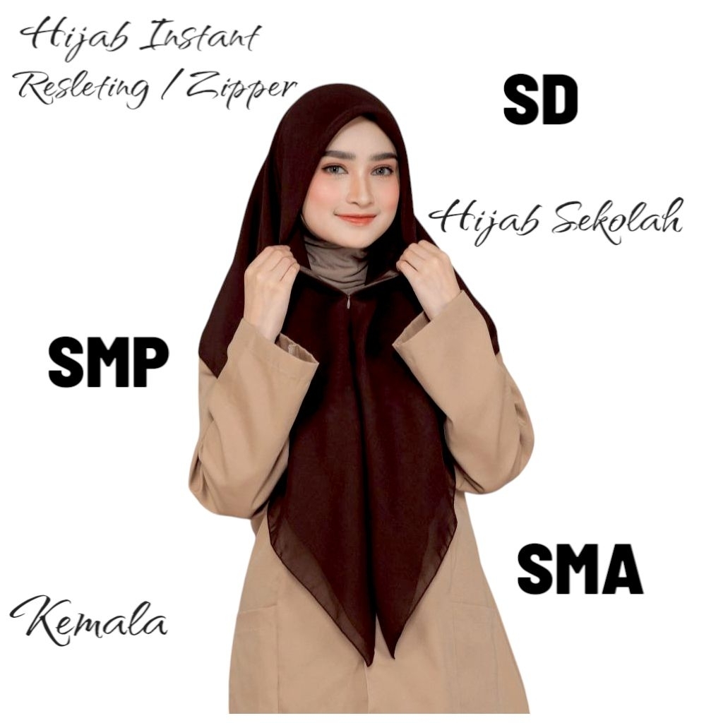 Hijab Sekolah_ Hijab Segitiga Resleting Polycotton Zipper
