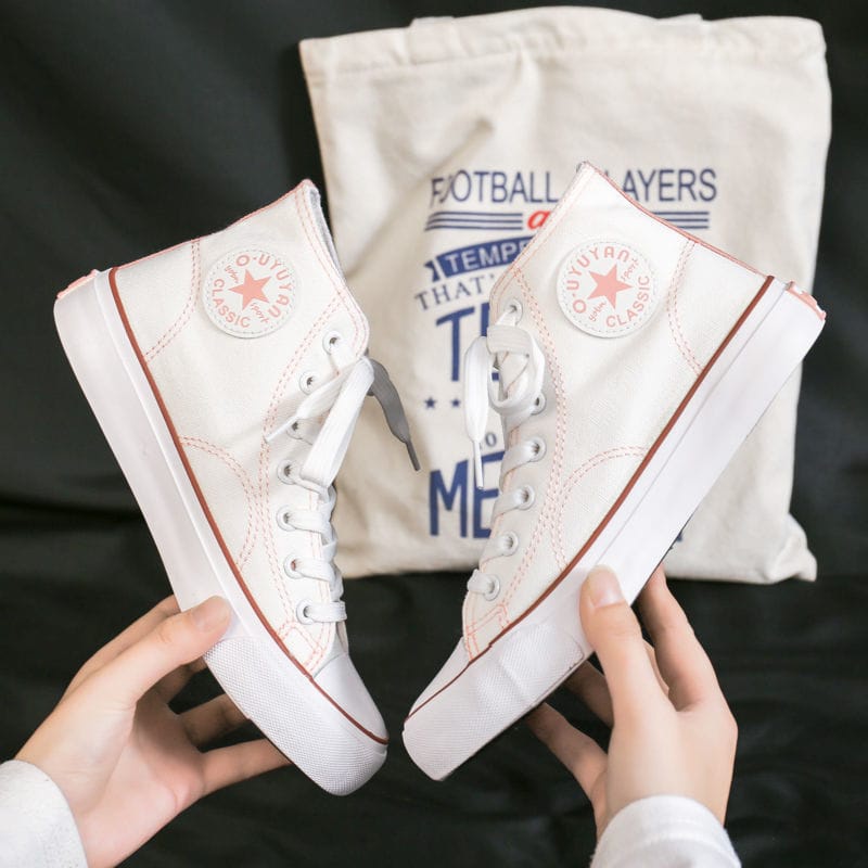 Sepatu Sneakers Import Wanita Putih Polos Garis Pink | Sepatu Sneakers Wanita Korea Hitam Polos Garis Putih Idealife40
