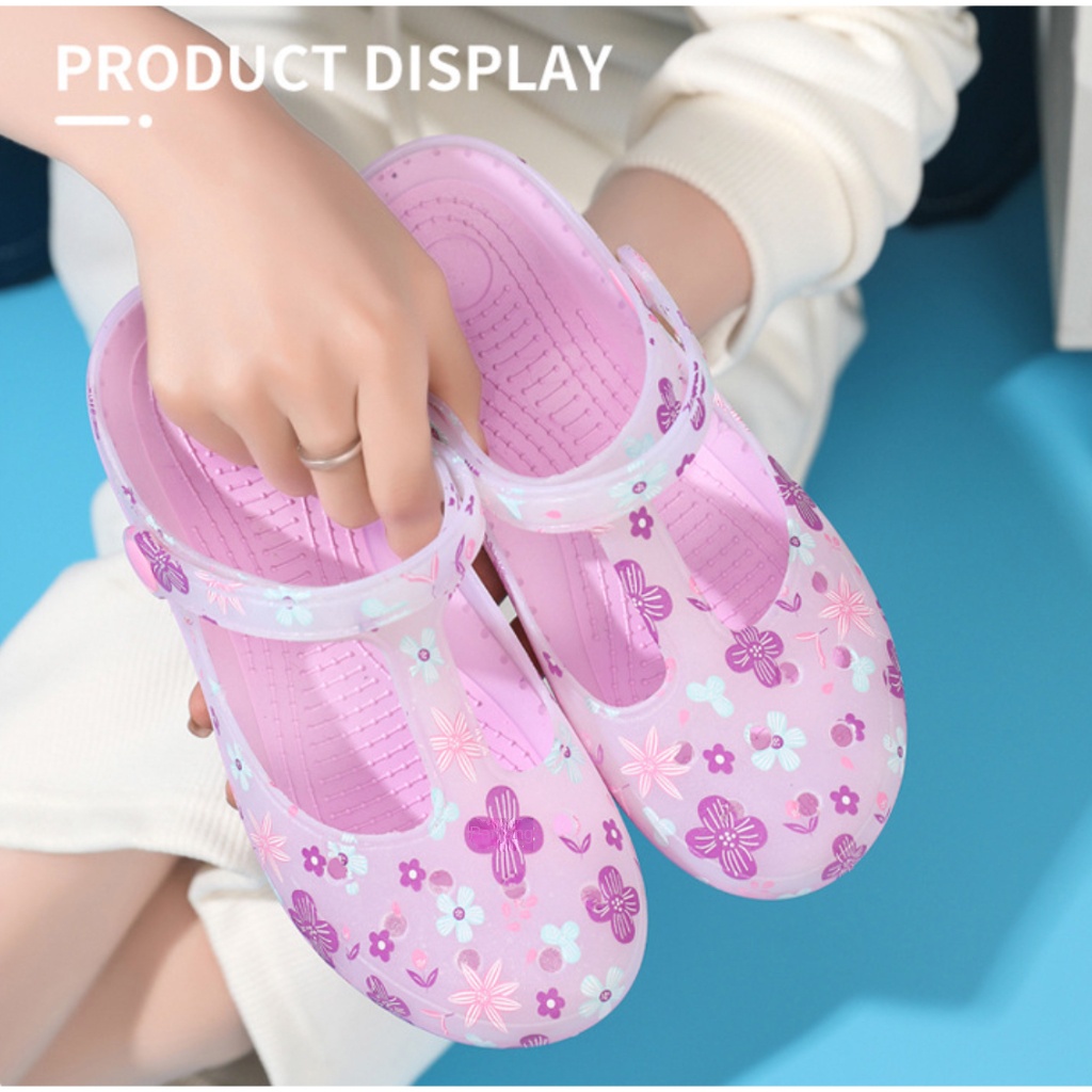 VEBLEN Sandal Wanita Mules Clog Wanita Cewek Gaya Fashion Korea Style Motif Bunga Bahan Jelly Transparan