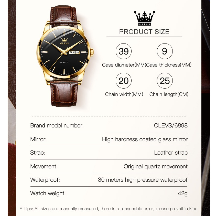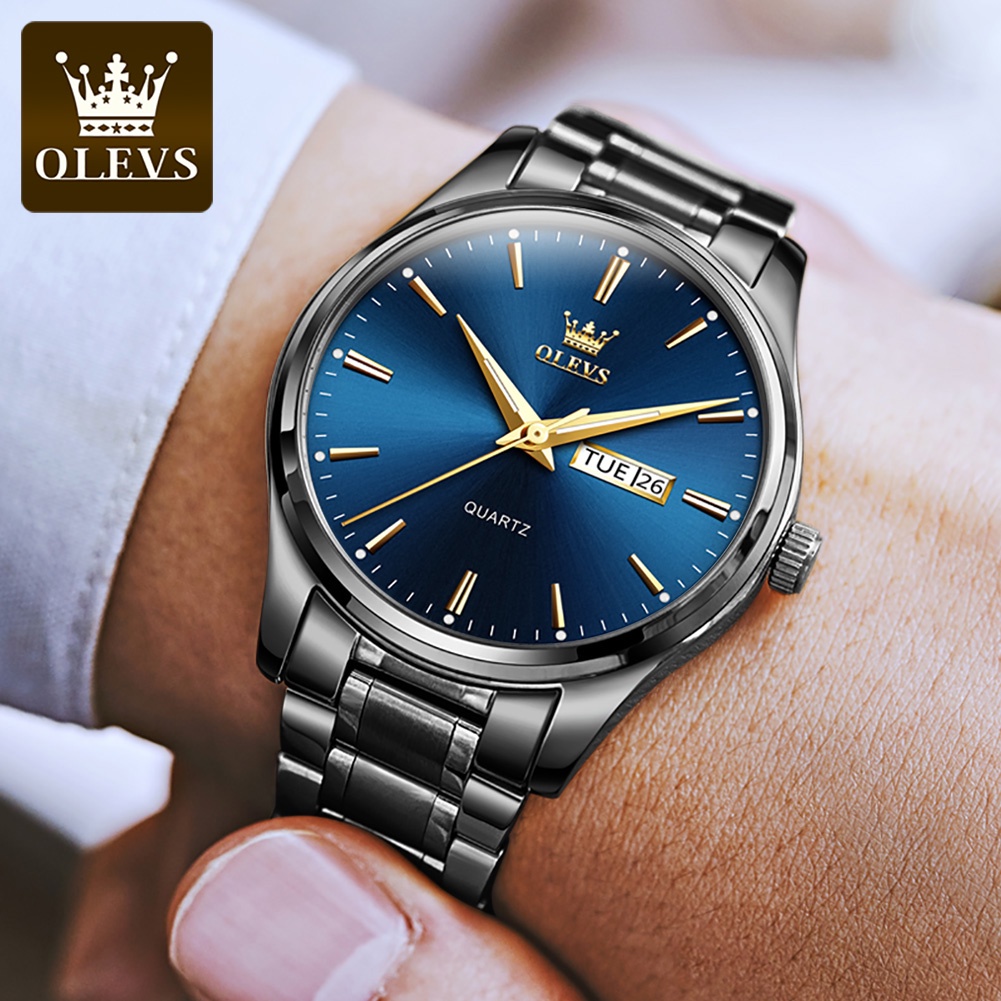OLEVS Jam Tangan Pria Anti Air Original Luxury Kalender Rantai Anti Karat Bercahaya Men Watch 6898