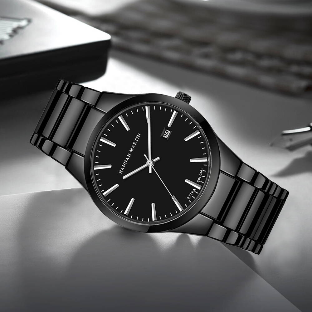 HANNAH MARTIN Jam Tangan Pria 100 Original Business Analog Tanggal Stainless Steel 1756