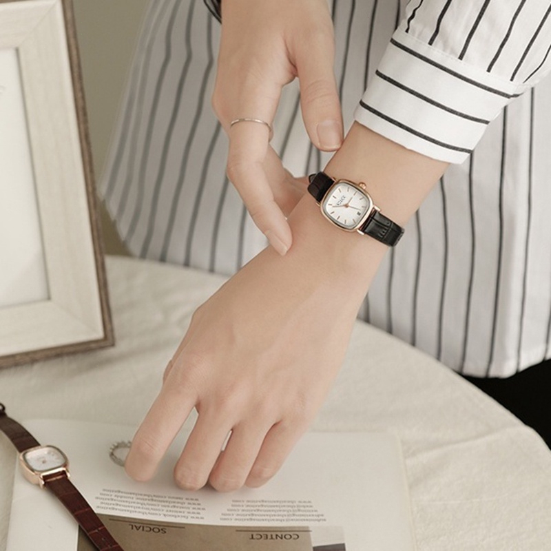 HOLEK 1301 Jam Tangan Wanita Tali Kulit Original Anti Air Fashion Simple Santai Quartz Elegant Jam Tangan Cewek+ Kotak H