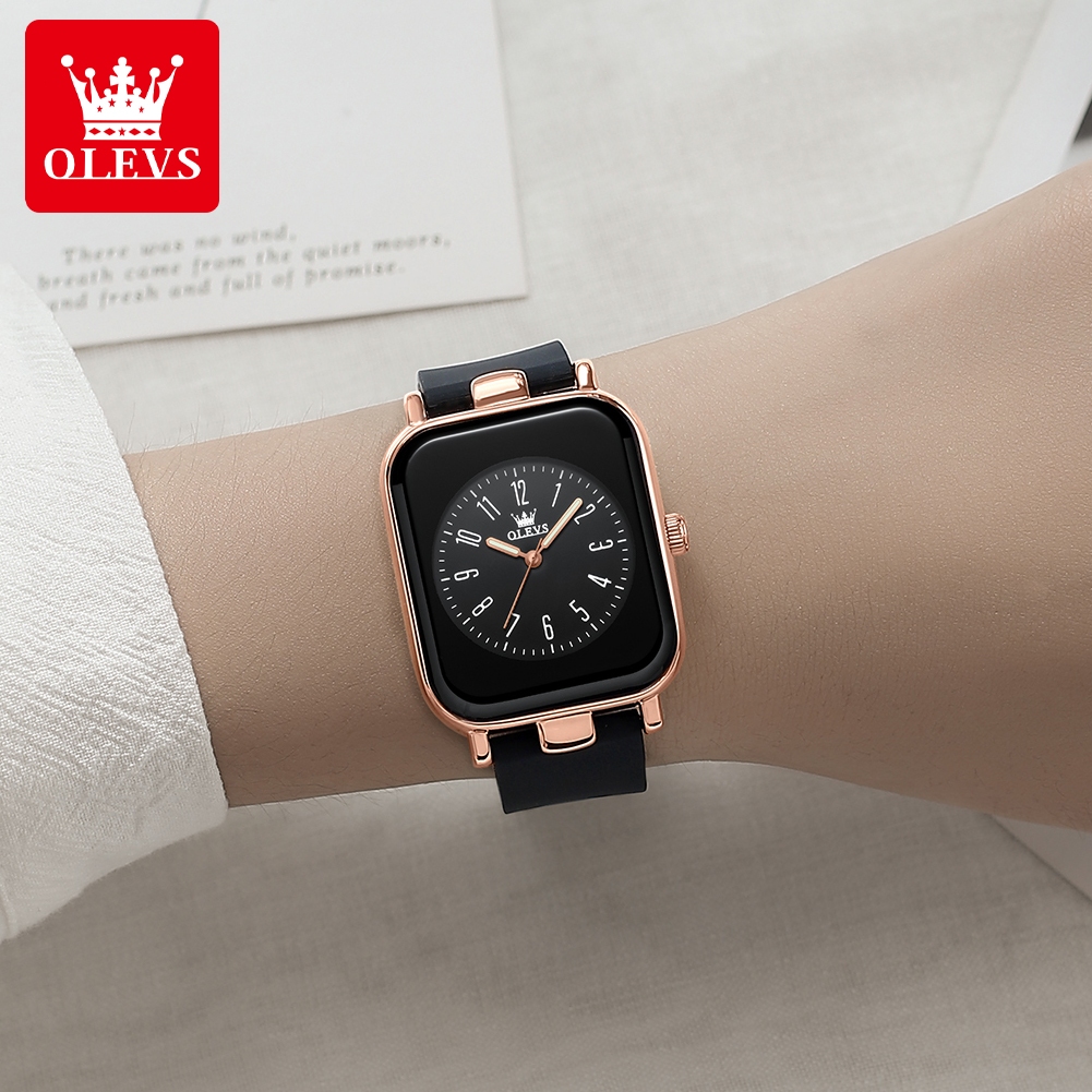 OLEVS Jam Tangan Wanita Anti Air Original Tahan Silika gel Tali Perempuan Rose Analog Watch Women Hitam Putih Model 99