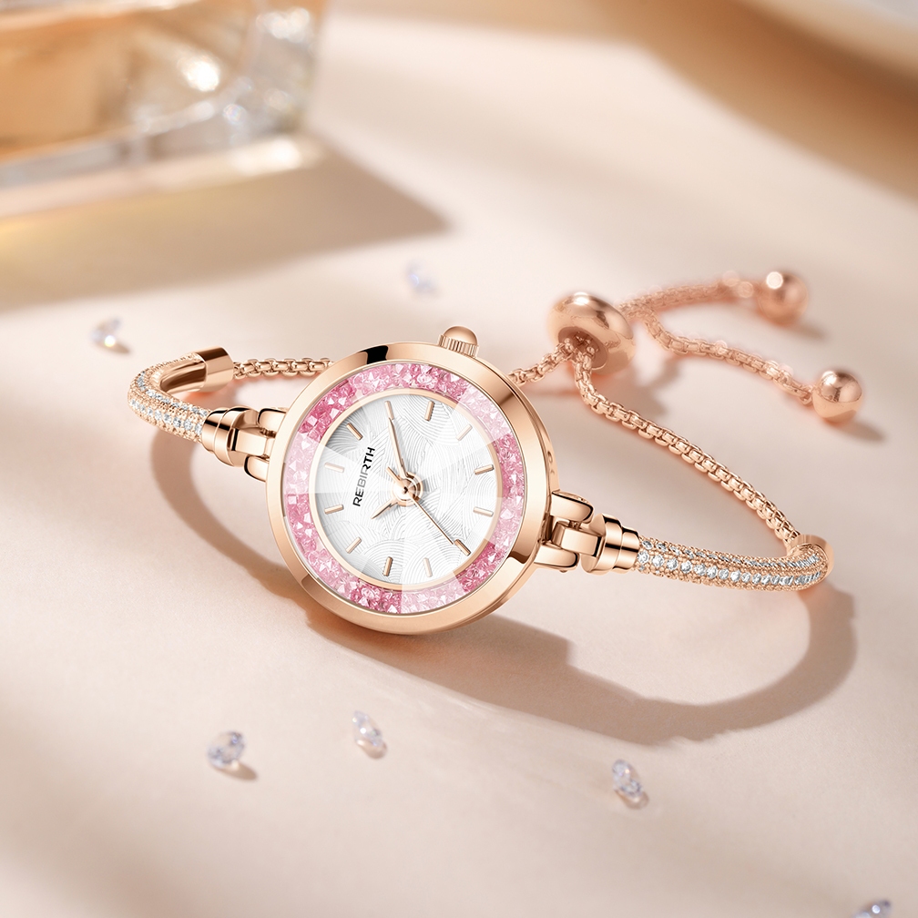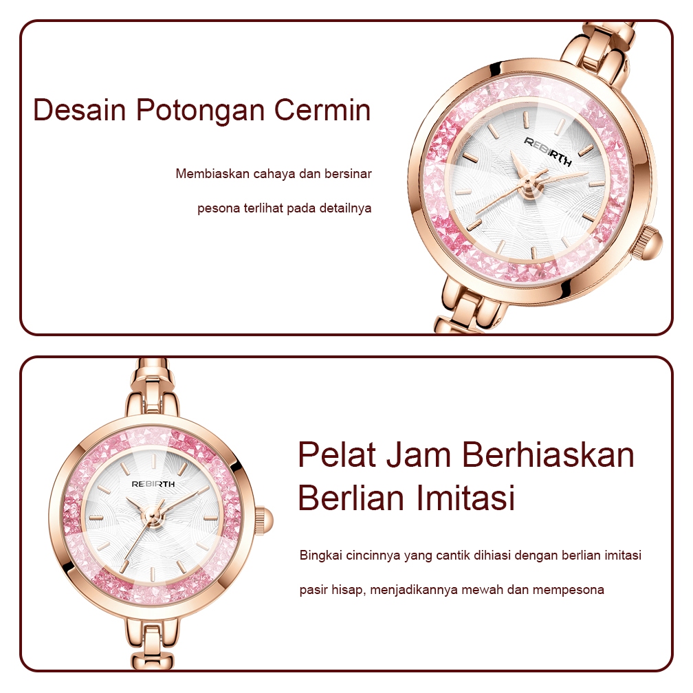 REBIRTH Jam Tangan Wanita Anti Air Gelang Gaya Berlian Tali Merenggang Jam Tangan Cewek Original