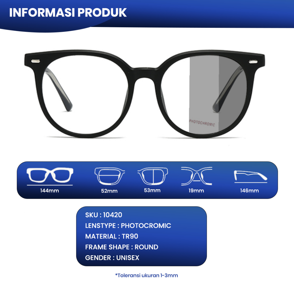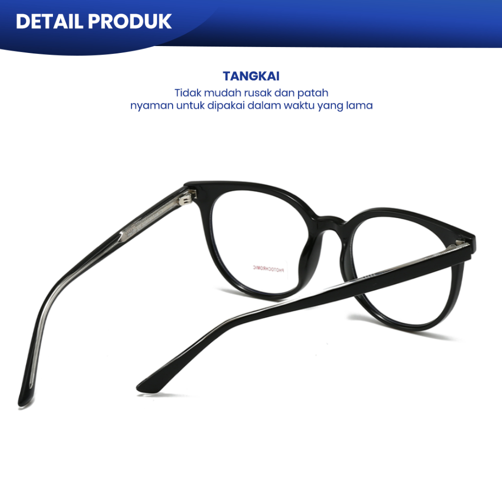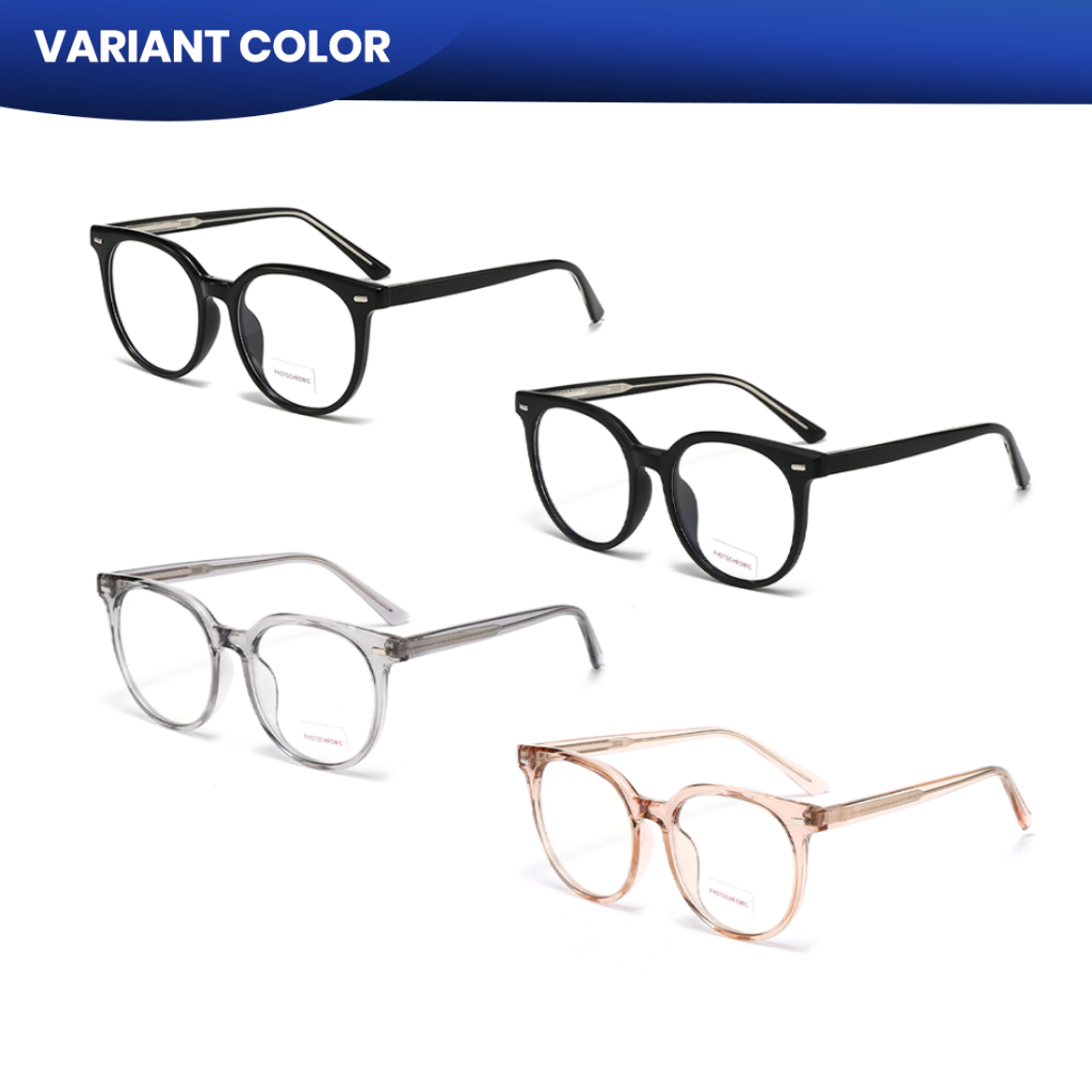 IOOI Kacamata Photocromic Minus Anti RadiasI Blueray Frame Bulat Lentur TR90 Fashion Pria Wanita 10420