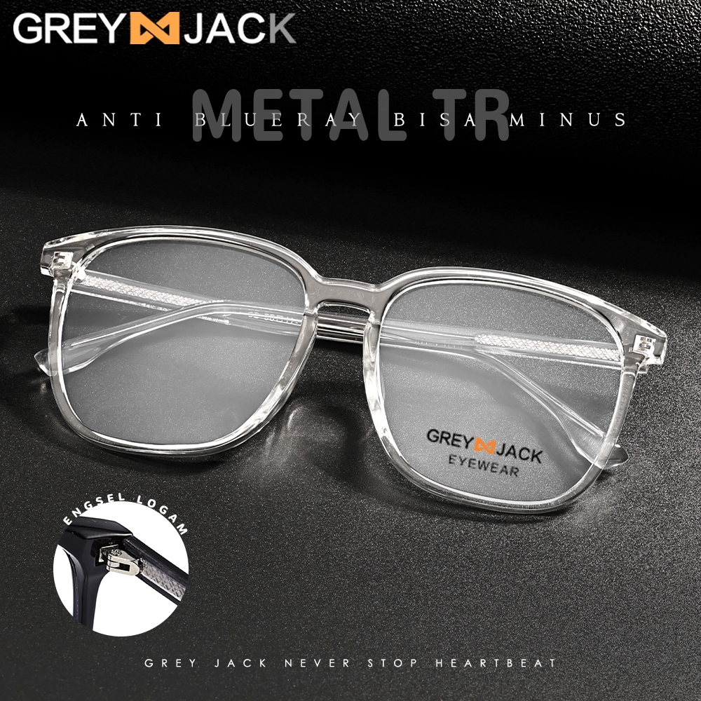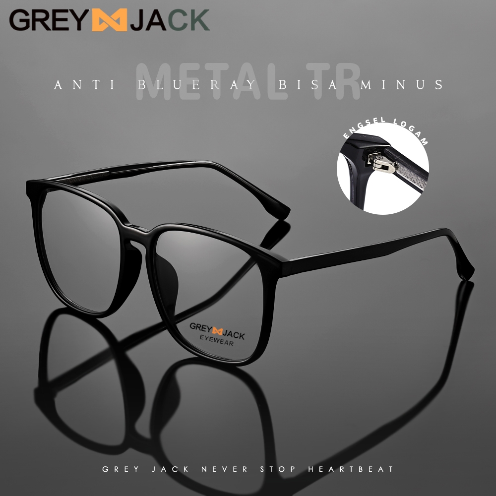 Grey Jack Kacamata Antiradiasi Blueray Model Kotak TR+Metal Fashion Pria Wanita Bisa Minus Simple Keren 30081