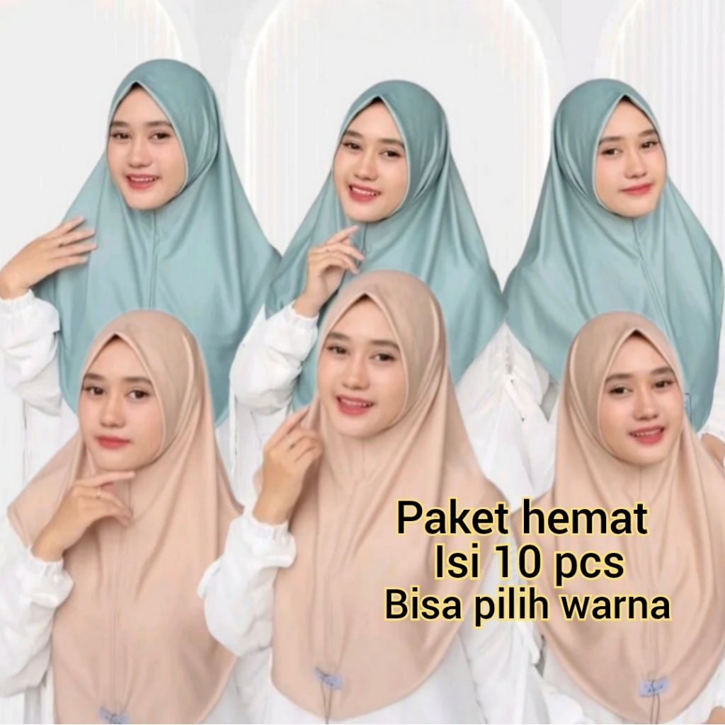 Hijab Paket hemat 10 pcs Hijab Bergo Malay Non Pad Jersey Size M Jilbab Hijab Kerudung Bergo Khimar Non Pet Jersey Premium