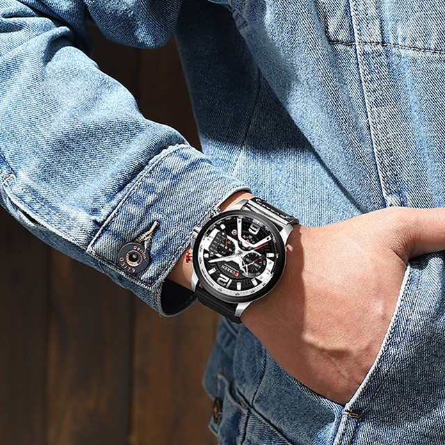 CURREN 8329 Jam Tangan Pria Analog Tali Kulit Chronograph Aktif CURRENOS