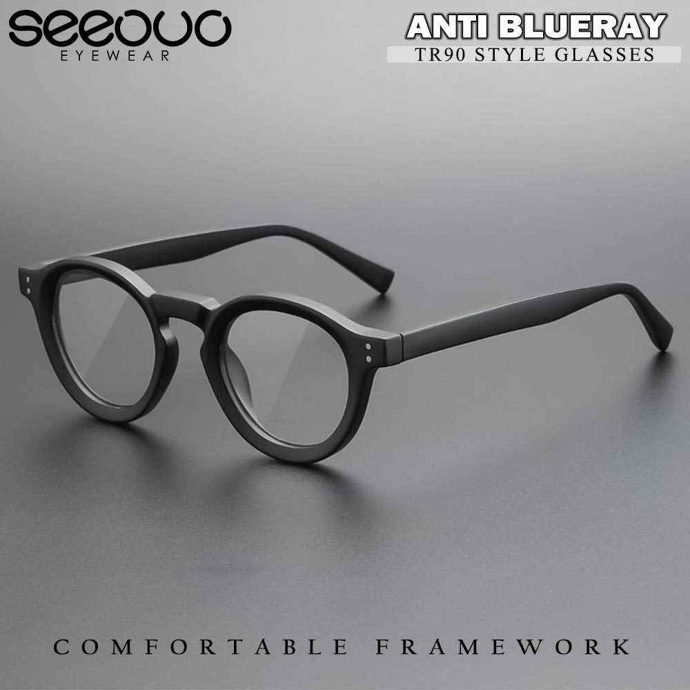 Seeouo Kacamata Antiradiasi Blueray Model Bulat Oval Frame Bold Stylish TR90 Kokoh Comfortable Glasses Fashionable Pria