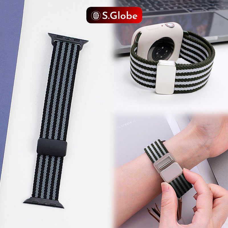 38/40/44/45/46mm for Apple Watch UIltra s6 7 8 9 10 11 Nylon Braided Magnetic Snap Sport Replacement Strap