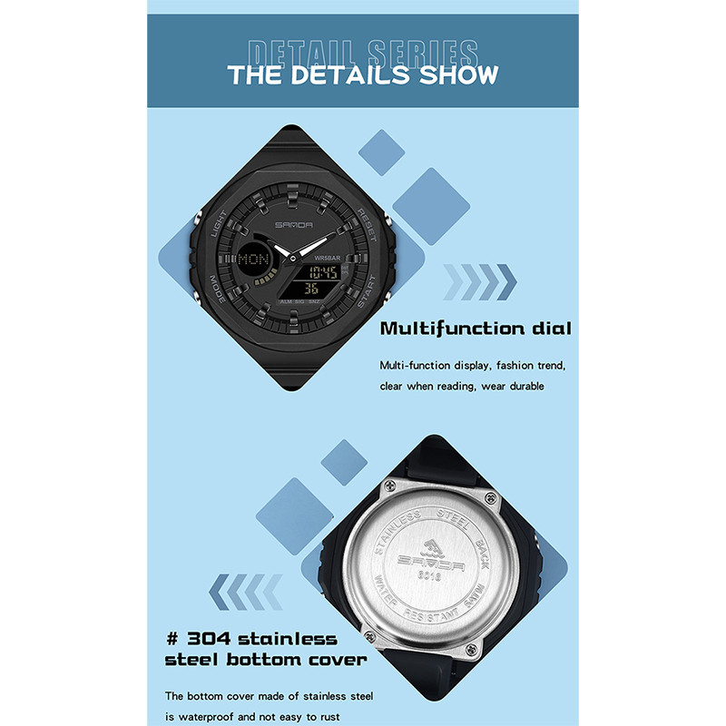 SANDA Jam Tangan Kuarsa Pria Mewah Jam Tangan Olahraga Militer Tahan Air Jam Tangan Elektronik Digital LED Tampilan Gand