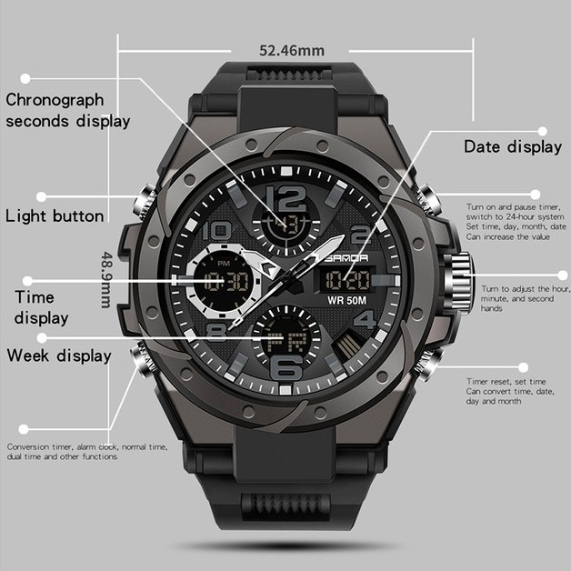 SANDA 6008 Jam Tangan Pria Digital Analog Tali Rubber Chronograph Anti Air CURRENOS