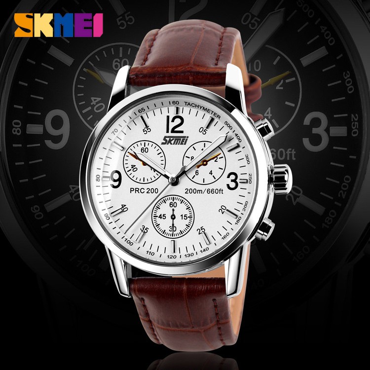 SKMEI 9070L Jam Tangan Pria Analog Tali Kulit MGOS