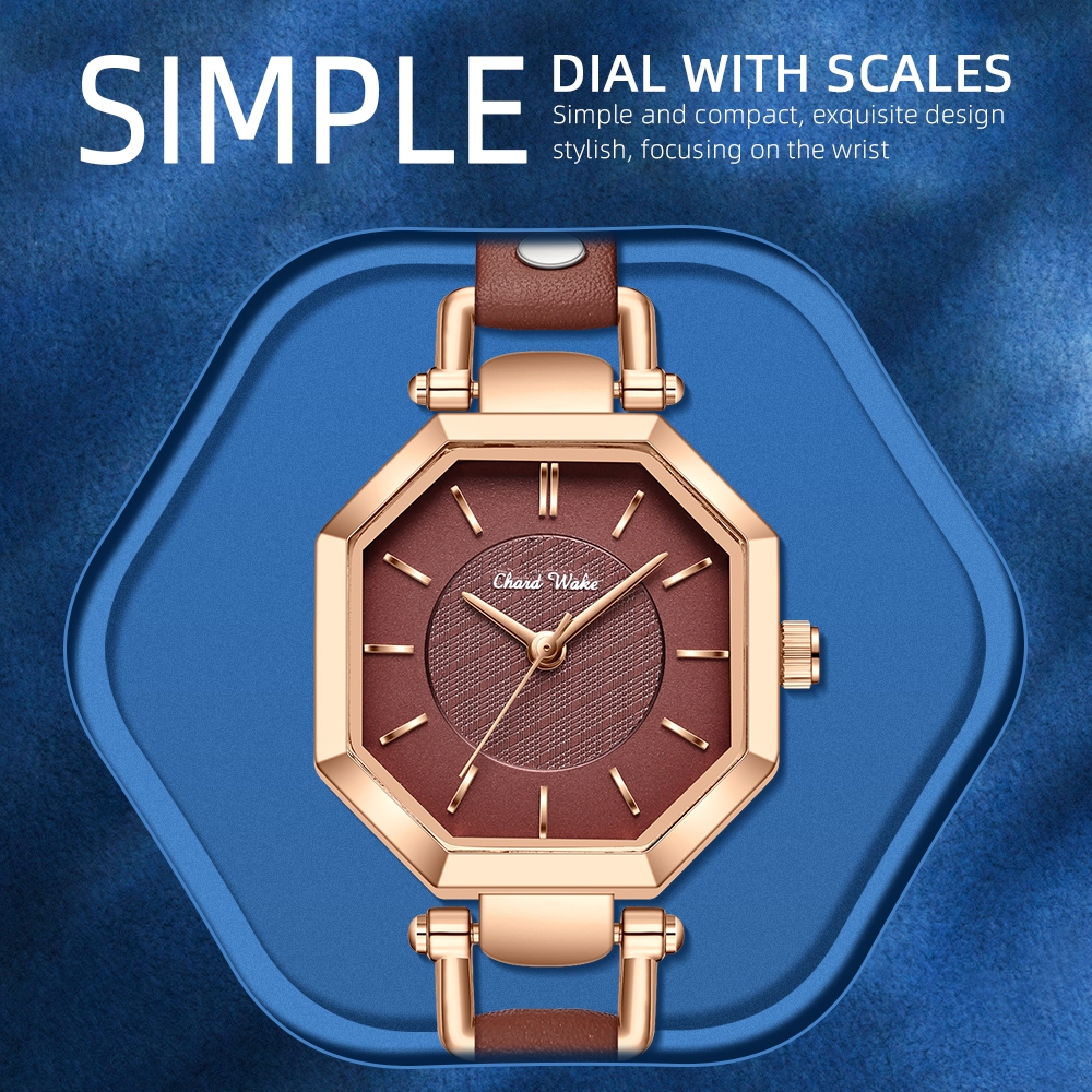 Chard Wake Jam Tangan Wanita Korea Anti Air Original Kuarsa Wanita Tali Kulit Jam Tangan Cewek Kotak Indah