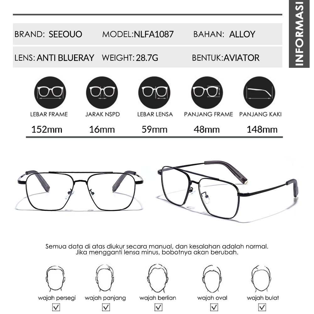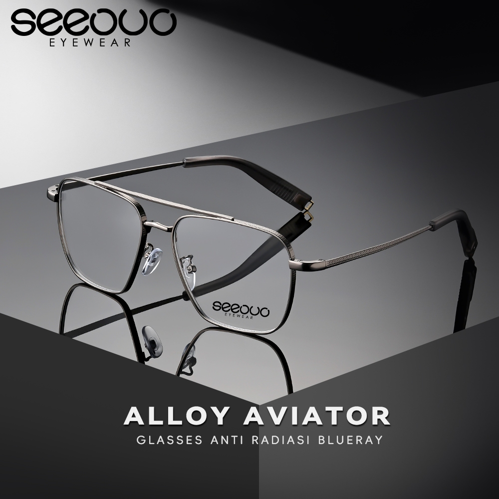 Seeouo Frame Kacamata Style Aviator Bahan Alloy Antiradiasi Blueray Bisa Minus Photocromic Bluecromic Ringan Unisex 1087
