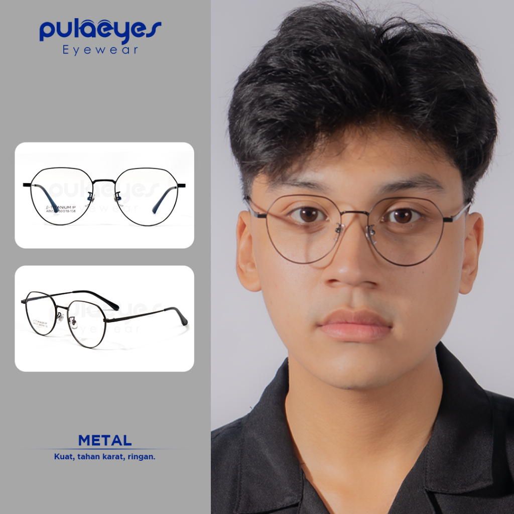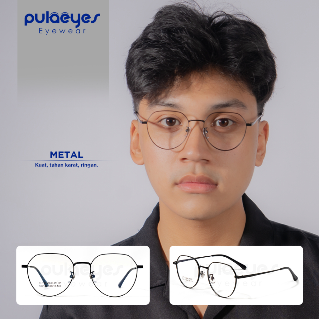 Pulaeyes Eyewear Kacamata Photocromic Minus Anti Blueray Radiasi Bluecromic Anti Silau Wanita Pria 2 in 1 Round Metal Fr