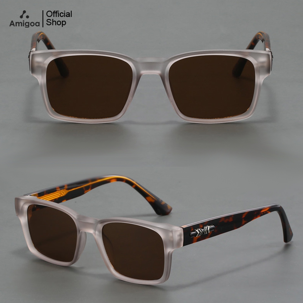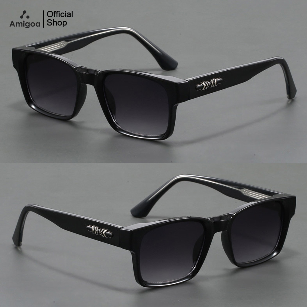 AMIGOA Kacamata Premium Pria Bingkai Persegi Retro Sastra Sunglasses Kacamata Outdoor Anti UV400 Dan Radiasi Kacamata Me