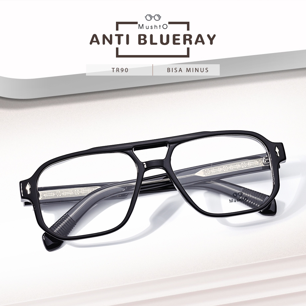 Mushto Kacamata Fashionable Pria Dan Wanita Lensa Antiradiasi Blueray Bisa Minus Frame Bahan TR90 Bentuk Aviator 1096
