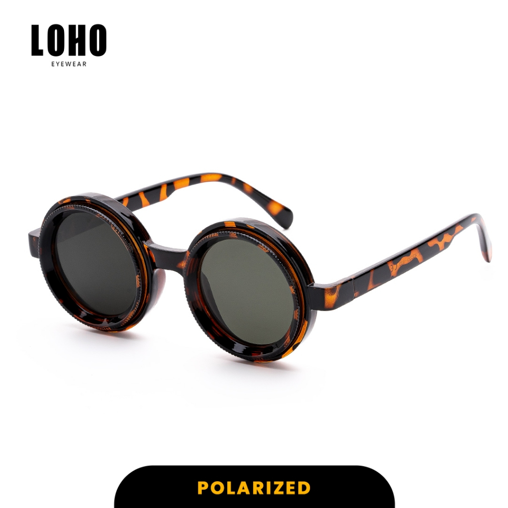 LOHO Kacamata Hitam Bulat Polarized Anti Uv Protection 400 Sunglasses Bahan Polycaonate Bisa Atur Tingkat Kegelapan Fash