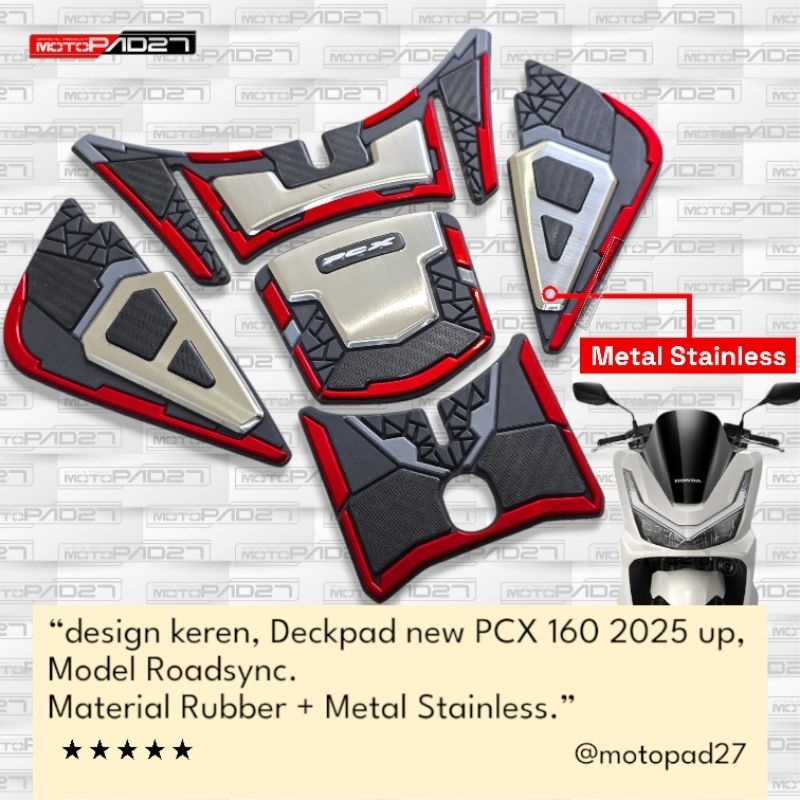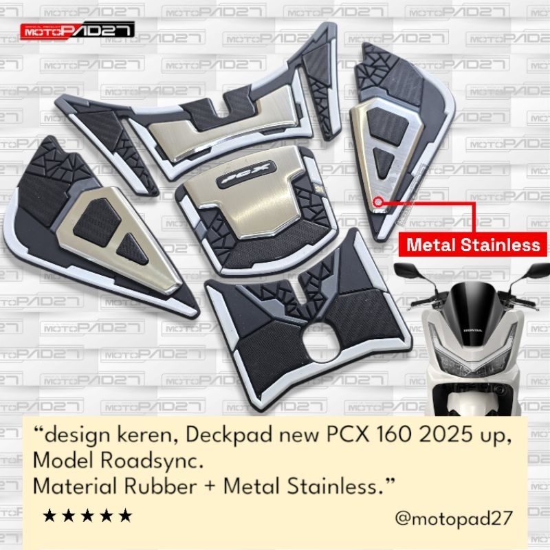 motopad27 rubber + stainless deckpad new pcx 160 2025 roadsync