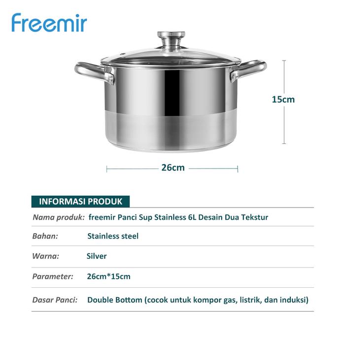 Murah [freemir] Panci Stainless 304 Food Grade 26 cm Anti Karat Double Bottom Kapasitas Jumbo 6 Liter Anti Lengket Keren