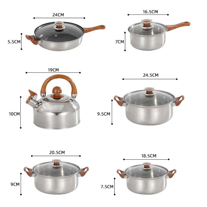 Promo QME- Panci Set Stainless Steel 6 Pcs Dengan Teko Stainless Panci Serbaguna Kitchenware Bermotif Kayu Keren