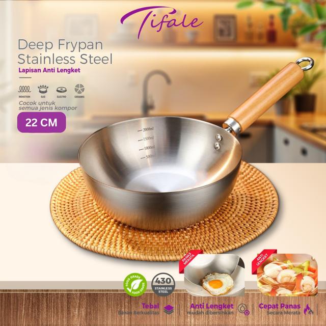 Terlaris [22CM] Tifale Zyra Deep Frypan Stainless Steel – Anti Lengket Cocok Semua Kompor (20cm/22cm/26cm) - 22 CM Keren