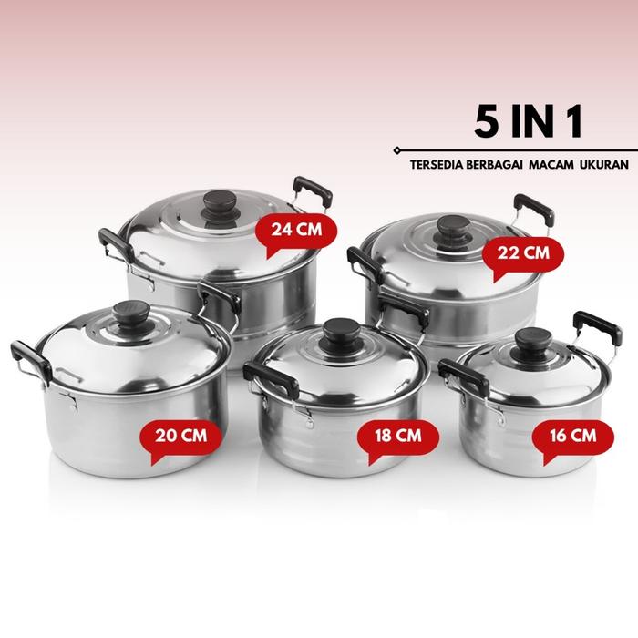 Terlaris BMW Kitchen Ware - 1 Set 5 Pcs Panci Soup Pot Steamer Stainless Steel Keren